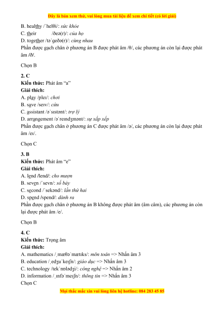 Phần được gạch chân ở phương án B được phát âm /θ/, các phương án còn lại được phát âm /ð/. Chọn B 2. C
