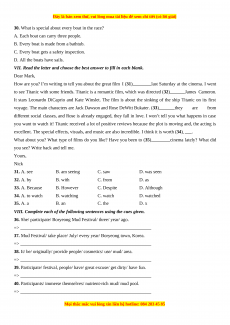 - VII. Read the letter and choose the best answer to fill in each blank.