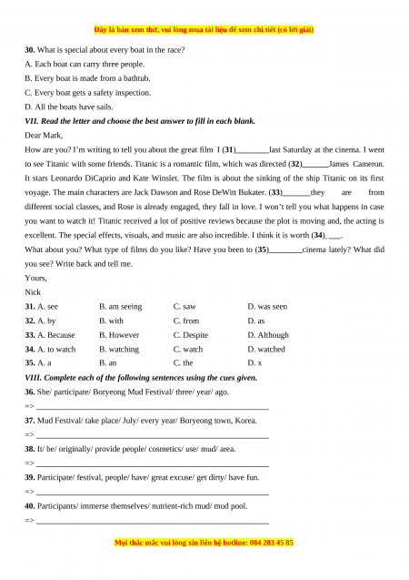- Đáp án: Mud Festival takes place in July every year in Boryeong town, Korea.