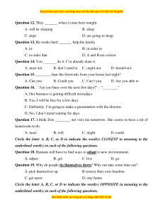 Question 18. Humans will have to find ways to adapt to new environments. A. adjust B. get C. live D. go