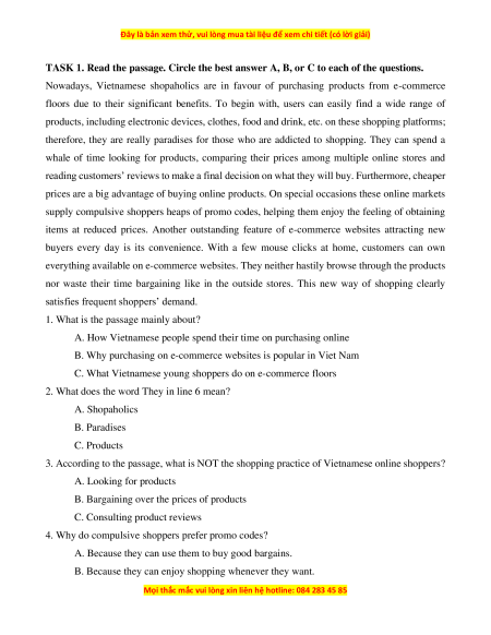 3. According to the passage, what is NOT the shopping practice of Vietnamese online shoppers? A. Looking for products
