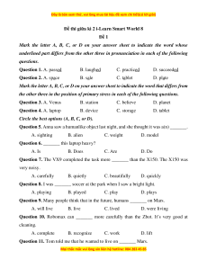 the other three in the position of primary stress in each of the following questions. Question 3. A. Venus B. station C. believe D. planet Question 4. A. laptop B. device C. storage D. tablet