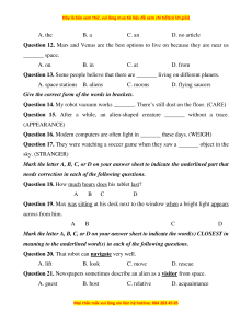 Question 13. Some people believe that there are _______ living on different planets. A. space stations B. aliens C. moons D. flying saucers