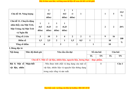 Chủ đề 8. Đa dạng thế (0,5 (1 (0,5 (0,5 3 4 25% giới sống điểm) điểm) điểm) điểm) 1 1 Chủ đề 9. Lực (0,5 (0,25 1 1 7,5% điểm) điểm)