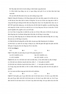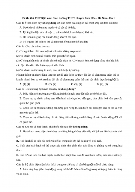 Đề thi thử THPTQG môn Sinh trường THPT chuyên Biên Hòa - Hà Nam- lần 1