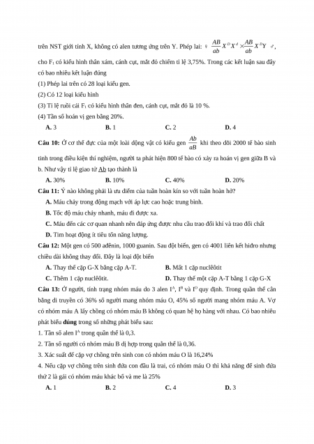 Câu 10: Ở cơ thể đực của một loài dộng vật có kiểu gen