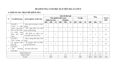 B. KHUNG BẢN ĐẶC TẢ ĐỀ KIỂM TRA