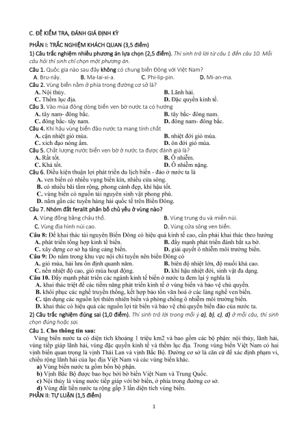 C. ĐỀ KIỂM TRA, ĐÁNH GIÁ ĐỊNH KỲ