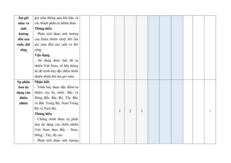và Bắc Trung Bộ, Nam Trung Bộ và Nam Bộ. 1 2 1 1 Thông hiểu