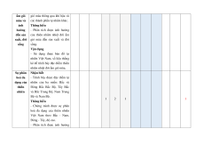 Vị trí địa lí và phạm vi lãnh 1 1 5% thổ Thiên nhiên nhiệt đới ẩm gió mùa và 2 1 1 1 2 1 27,5% ảnh hưởng đến sản xuất, đời sống Sự phân hoá đa dạng của 1 2 1 1 1 2 2 15% thiên nhiên Vấn đề sử 2 1 2 1 7,5% dụng hợp lí tài nguyên thiên nhiên và bảo vệ môi trường Dân số 1 2 1 1 2 1 10% Lao động và 1 2 4 1 2 4 17,5% việc làm Đô thị hóa 3 2 2 3 2 2 17,5% Đô thị hoá 6 6 2 4 2 8 1 1 1 9 11 11 31 Tổng số điểm 3,0 2,0 2,0 3,0 4 3 3 10 40 100% Tỉ lệ % 30% 20% 20% 30% 30% 30% % TRƯỜNG THPT …..