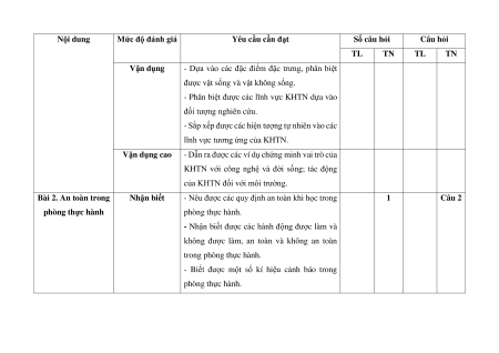 1. Khung ma trận đề kiểm tra giữa kì I môn Khoa học tự nhiên - lớp 6 a. Khung ma trận