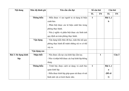thực – thực phẩm điểm) điểm) điểm) điểm) điểm) thông dụng Tổng số ý/câu 0 16 4 ý 0 2 0 2 0 8 ý/4 bài 16 100 Điểm số 0 4 3 0 2 0 1 0 6 4 % Tổng số điểm 4,0 3,0 2,0 1,0 10 2. Bảng đặc tả Nội dung