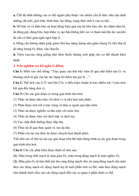 Câu 3: Cho các giai đoạn có trong quá trình tiêu hoá: