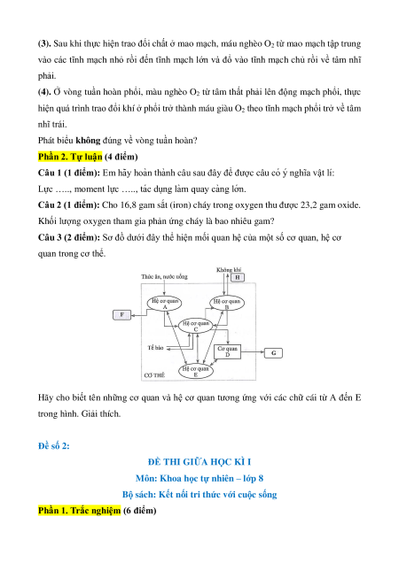 Bộ 9 đề thi giữa kì 1 KHTN 8 Kết nối tri thức Cấu trúc mới có đáp án