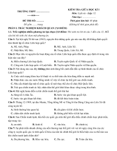MÔN: LỊCH SỬ - LỚP: 12 Năm học: …………….