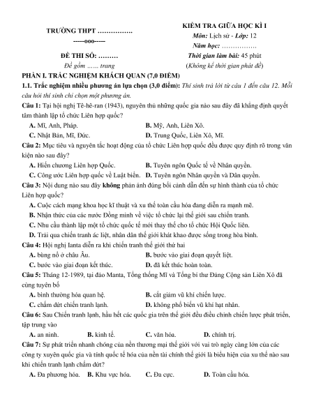 Câu 3: Nội dung nào sau đây không phản ánh đúng bối cảnh dẫn đến sự hình thành của tổ chức Liên hợp quốc?