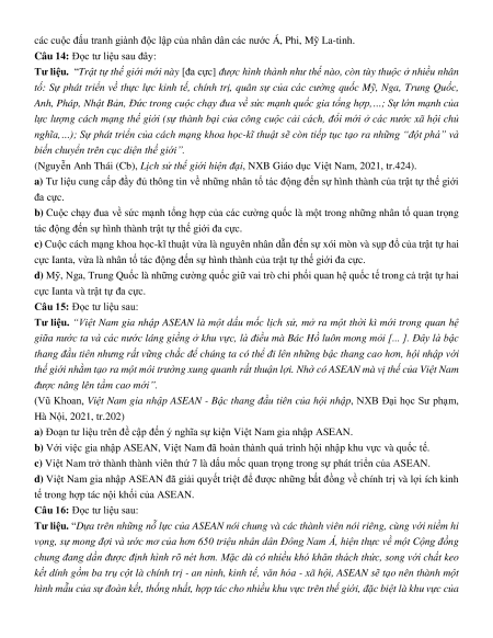 - Tailieugiaovien.com.vn giới thiệu Bộ 9 đề thi giữa kì 1 Lịch sử 12 Kết nối tri thức Cấu trúc mới có đáp án gồm 3 đề cấu trúc mới; 6 đề đầy đủ ma trận và lời giải chi tiết môn Lịch sử 12 Kết nối tri thức mới nhất năm 2024 nhằm giúp Giáo viên có thêm tài liệu tham khảo ra đề thi Lịch sử 12.