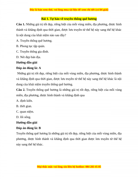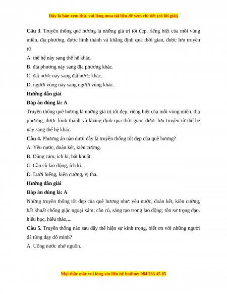Câu 3. Truyền thống quê hương là những giá trị tốt đẹp, riêng biệt của mỗi vùng