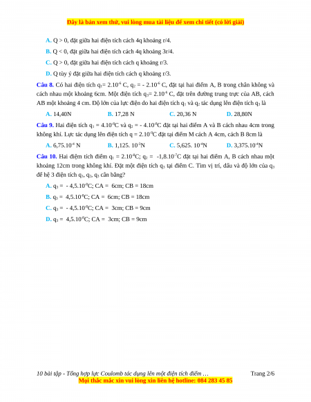10 bài tập - Tổng hợp lực Coulomb tác dụng lên một điện tích điểm … Trang 2/6