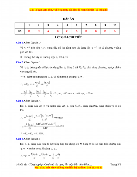 10 bài tập - Tổng hợp lực Coulomb tác dụng lên một điện tích điểm … Trang 3/6