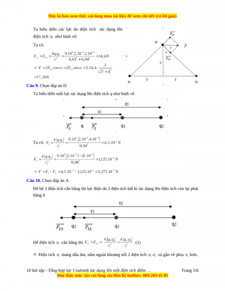 10 bài tập - Tổng hợp lực Coulomb tác dụng lên một điện tích điểm … Trang 4/6