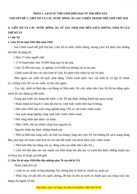 CHUYÊN ĐỀ 1: LIÊN XÔ VÀ CÁC NƯỚC ĐÔNG ÂU SAU CHIẾN TRANH THẾ GIỚI THỨ HAI