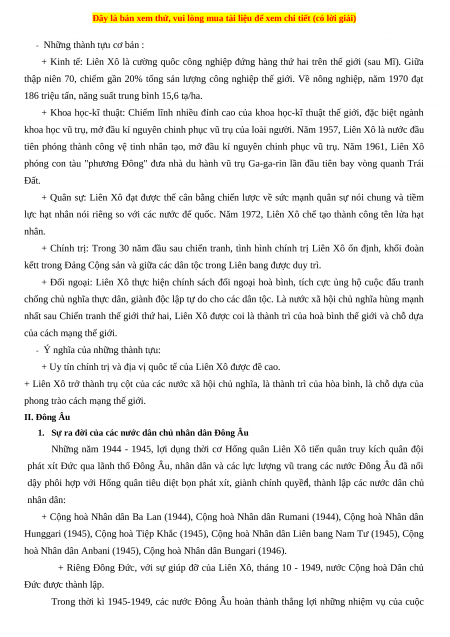 A. LIÊN XÔ VÀ CÁC NƯỚC ĐÔNG ÂU TỪ SAU NĂM 1945 ĐẾN GIỮA NHỮNG NĂM 70 CỦA THẾ KỈ XX I. Liên Xô