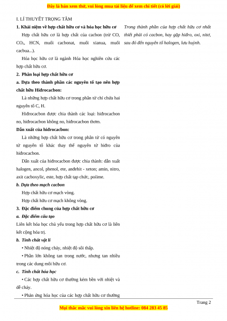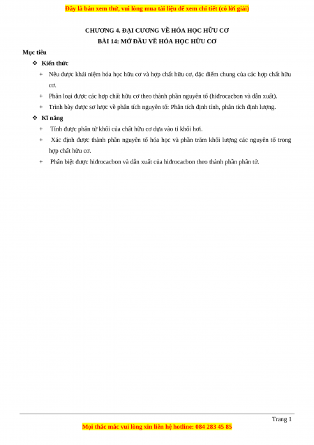 + Phân biệt được hiđrocacbon và dẫn xuất của hiđrocacbon theo thành phần phân tử. Trang 1