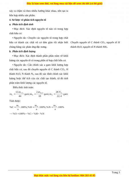 + Trình bày được sơ lược về phân tích nguyên tố: Phân tích định tính, phân tích định lượng. Kĩ năng