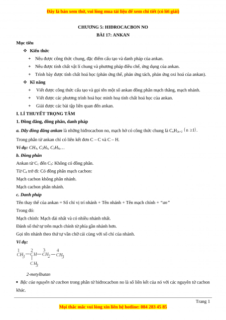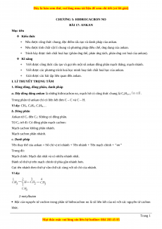 CHƯƠNG 5: HIĐROCACBON NO BÀI 17: ANKAN Mục tiêu Kiến thức