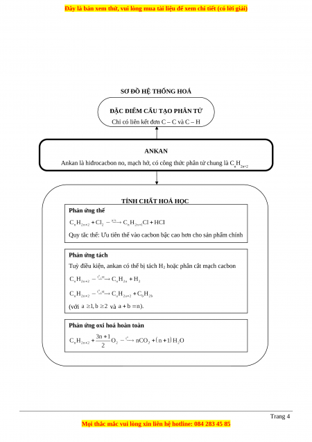 + Trình bày được tính chất hoá học (phản ứng thế, phản ứng tách, phản ứng oxi hoá của ankan).