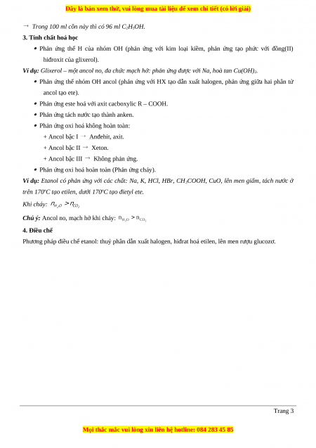 Chú ý: Ancol no, mạch hở khi cháy: 4. Điều chế