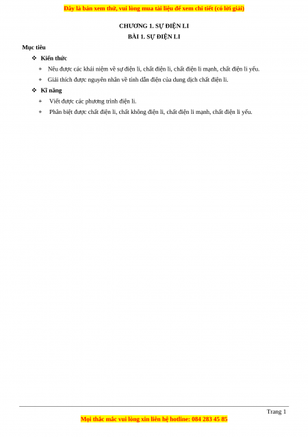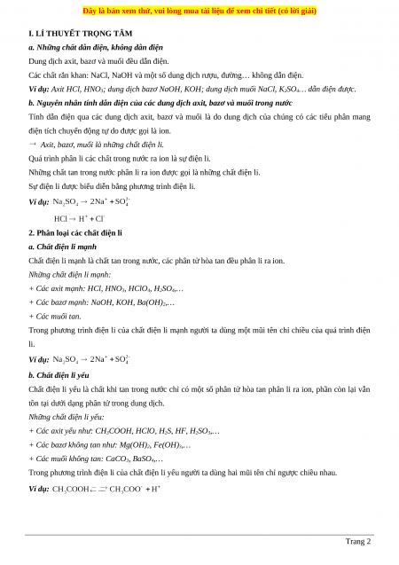 + Phân biệt được chất điện li, chất không điện li, chất điện li mạnh, chất điện li yếu. Trang 1