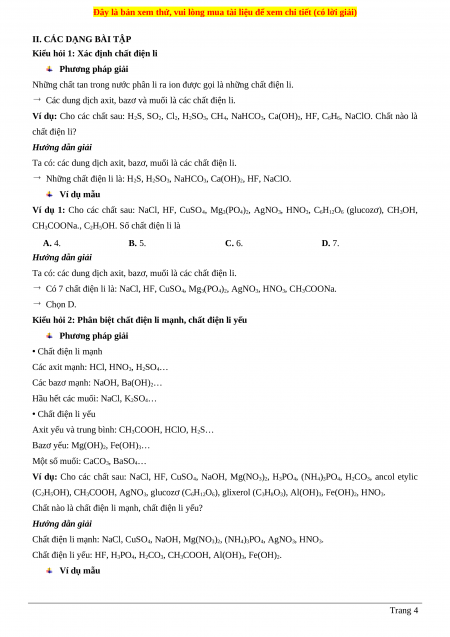 Kiểu hỏi 2: Phân biệt chất điện li mạnh, chất điện li yếu Phương pháp giải Chất điện li mạnh