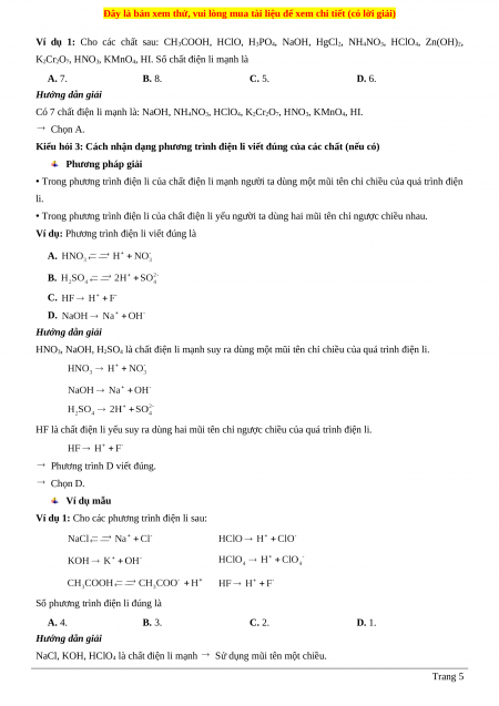 Trong phương trình điện li của chất điện li yếu người ta dùng hai mũi tên chỉ ngược chiều nhau. Ví dụ: Trang 2