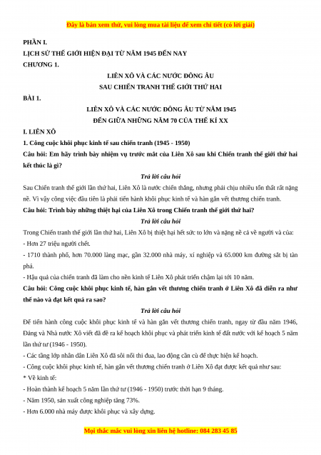 LỊCH SỬ THẾ GIỚI HIỆN ĐẠI TỪ NĂM 1945 ĐẾN NAY CHƯƠNG 1.