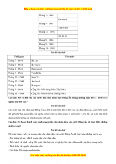 Trả lời câu hỏi Thời gian Tên nước Tháng 7 - 1944 Ba Lan Tháng 8 - 1944 Ru-ma-ni Tháng 4 - 1945 Hung-ga-ri Tháng 5 - 1945 Tiệp Khắc Tháng 11 - 1945 Nam Tư Tháng 12 - 1945 An-ba-ni Tháng 9 - 1946 Bun-ga-ri Tháng 9 - 1949