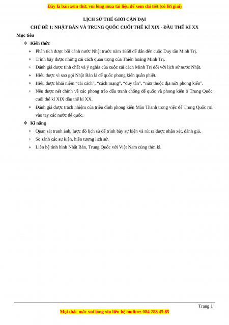 + Liên hệ tình hình Nhật Bản, Trung Quốc với Việt Nam cùng thời kì. Trang 1