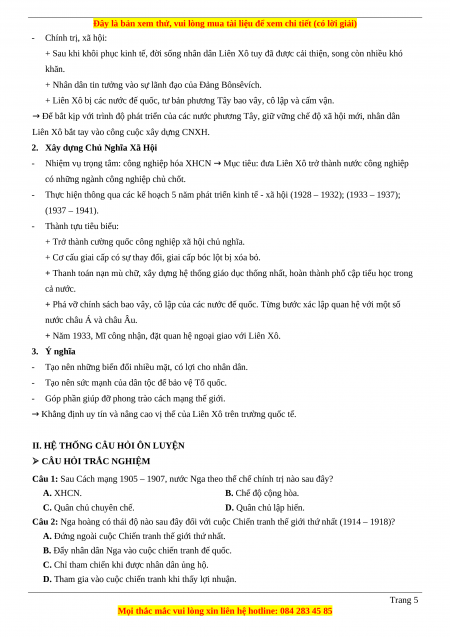 CHỦ ĐỀ 1: CÁCH MẠNG THÁNG MƯỜI NGA NĂM 1917 VÀ CÔNG CUỘC XÂY DỰNG CHỦ