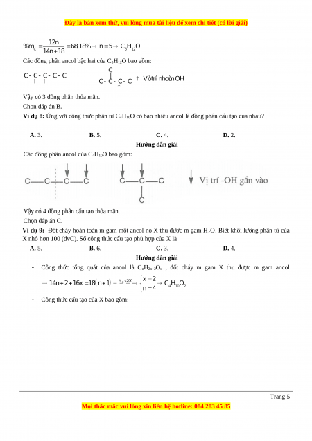 Ví dụ 6: Số ancol bậc một là đồng phân cấu tạo của nhau có công thức phân tử C5H12O là A. 4. B. 1. C. 8. D. 6. Hướng dẫn giải