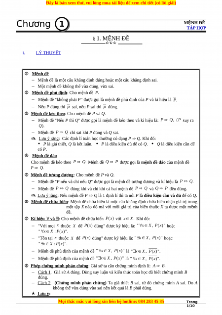 MỆNH ĐỀ Chương 1 TẬP HỢP § 1. MỆNH ĐỀ i. L Ý THUYẾT Mệnh đề