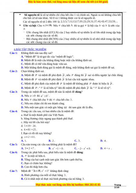 Câu nào trong các câu sau không phải là mệnh đề? A. . B. . C. . D. . Câu 6:
