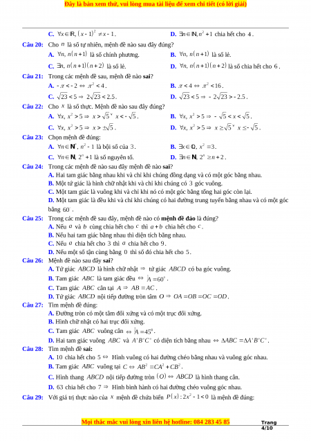 Câu 28: Tìm mệnh đề sai: A. chia hết cho
