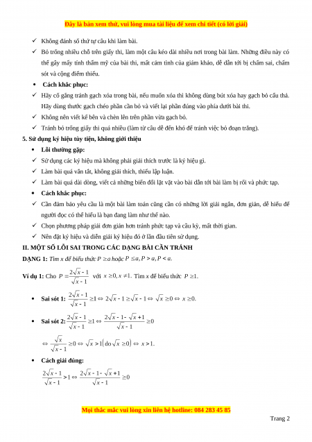 II. MỘT SỐ LỖI SAI TRONG CÁC DẠNG BÀI CẦN TRÁNH