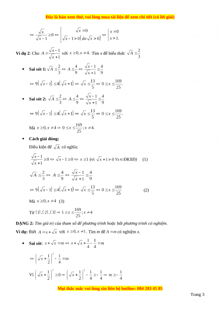 DẠNG 2: Tìm giá trị của tham số để phương trình hoặc bất phương trình có nghiệm. Ví dụ: Biết với . Tìm m để có nghiệm x. Sai sót: Vì