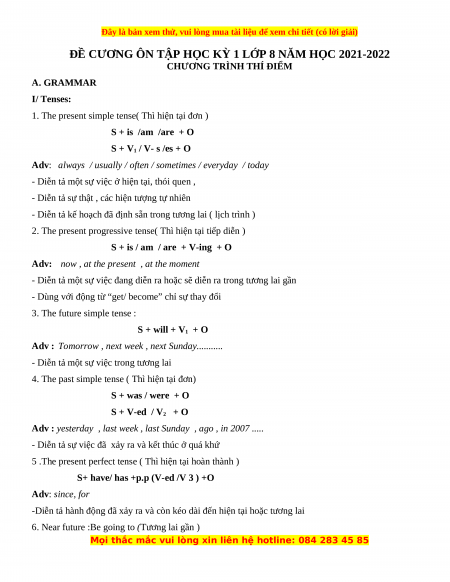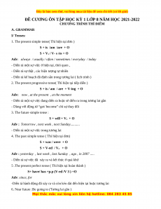 CHƯƠNG TRÌNH THÍ ĐIỂM A. GRAMMAR I/ Tenses:
