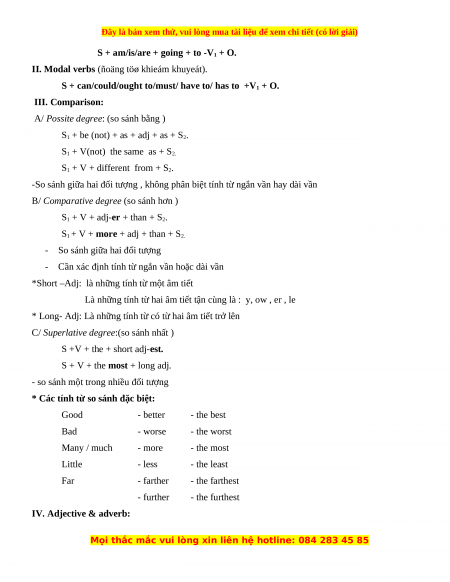 S + can/could/ought to/must/ have to/ has to +V1 + O. III. Comparison: