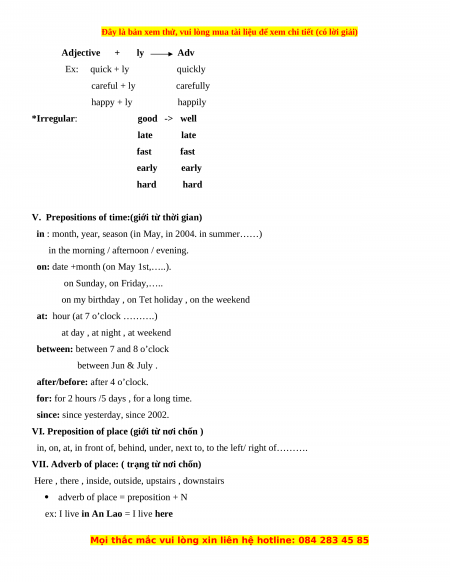 IV. Adjective & adverb: