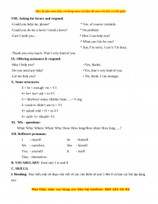 -Let me help you? + No, thank. I can manage. X. Some structures: S + be + enough +to + V1 S+ be+ too+ adj + to-V1