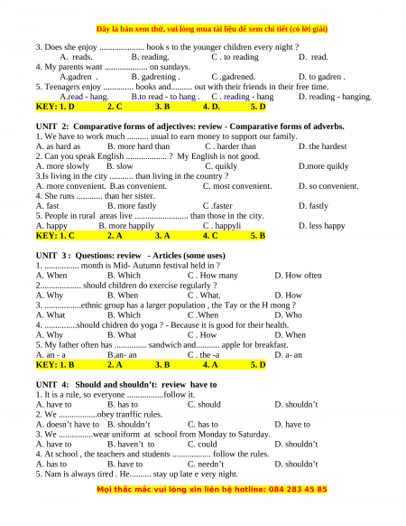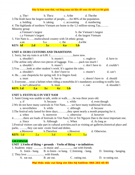 KEY: 1.a 2.a 3.c 4.c 5.d UNIT 3: PEOPLES OF VIET NAM